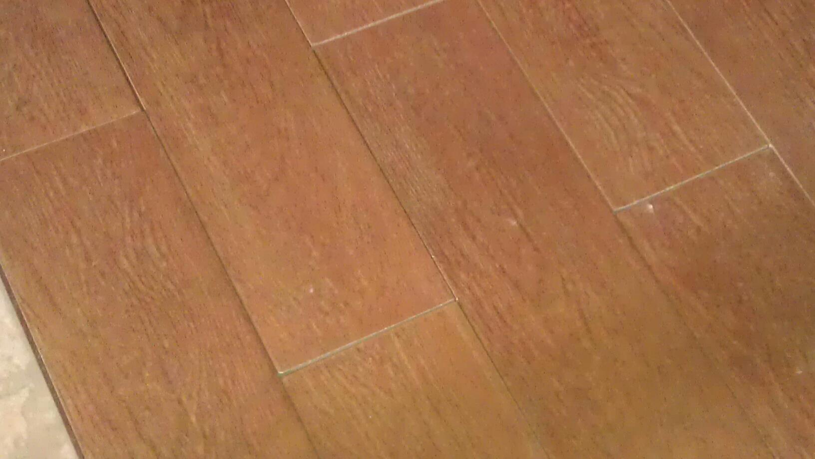 Our den tile, for instance, needed to be started at one edge. When the house was built there was an island of carpet in the center of the room. When we tiled that area, if we’d chosen “start in the middle”, it would have left funky long cut tiles along the edge. We needed a border on the angled edges of that space to make it look nice and not like an after thought. The long cut tiles are on the far wall and run slightly underneath the baseboard so they look more like normal, uncut wood planks. The cut tiles along that wall are also buried by a long bookshelf, a curio shelf and a cedar chest, whereas long cut tiles on the border next to the original tiles would not be a pleasing look at all.