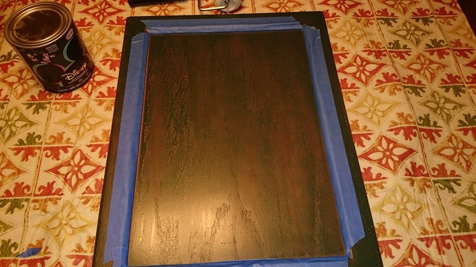 I then taped the “frame” of the door to make it easier to roll on the chalkboard paint without worrying about getting it all over the edges.