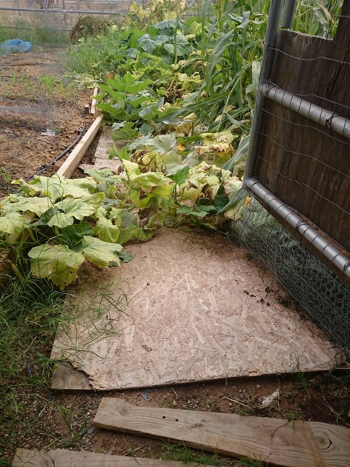 We used old pallets we’d gotten for free at a local business and slid them down over T posts for vines to climb. We added the poop trifecta in the enclosed area where we have planted large leaf and sweet basil, oregano, parsley and sage (the rosemary bush is by the front porch. Sorry, no thyme). We also added our manure mix along the outside of the pallets where we will be planting grapes next year. We’re hoping the vines will do well because those pallets are less than attractive as is. If we have no luck with grapes, we’ll just plant more squash because heaven knows those vine like crazy and will turn those ugly pallets green in no time.